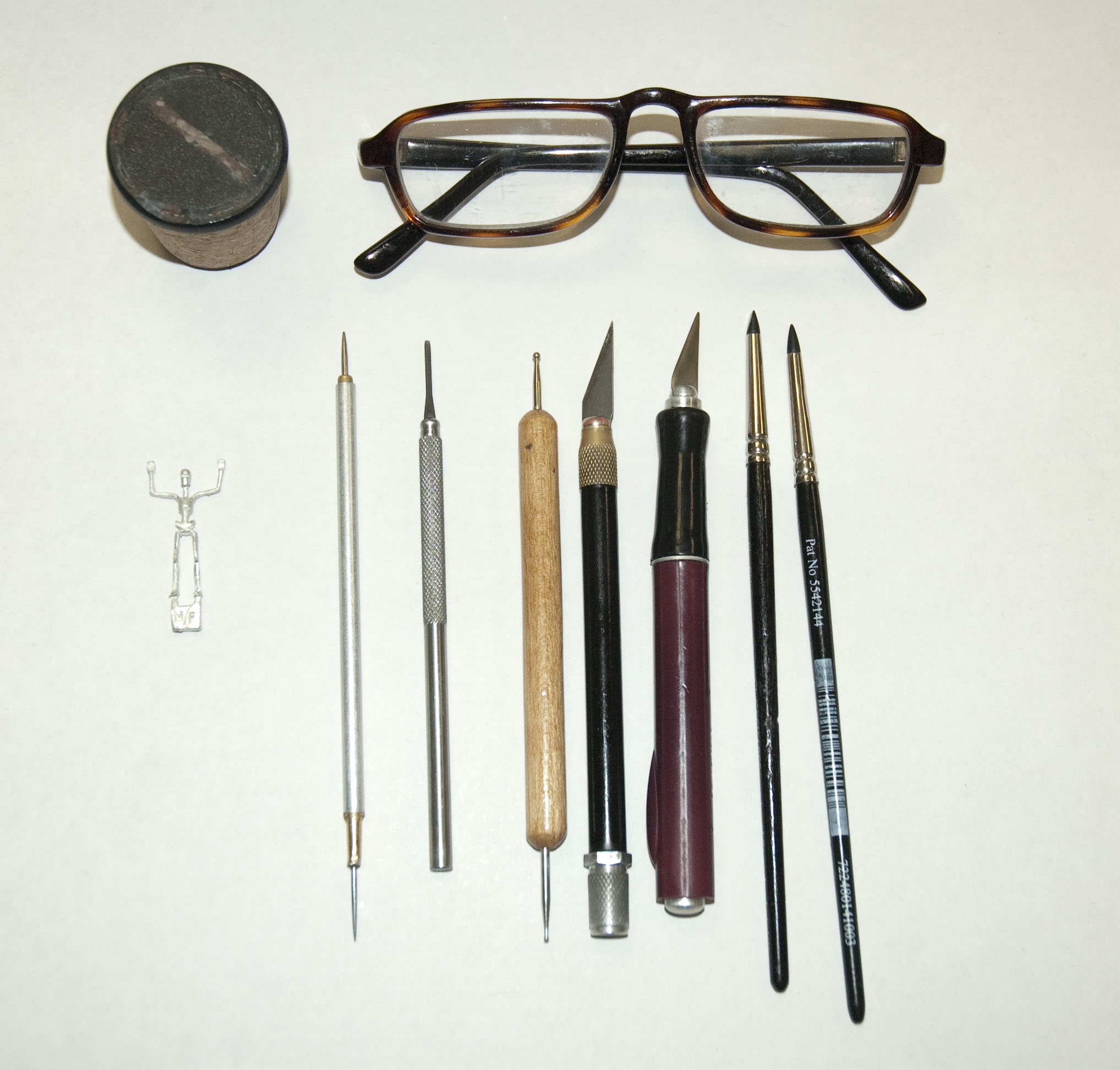 Tools are as unique and varied as the sculptors that use them. We all have our personal favorites, but generally there is one tool that we all use—an X-acto blade with the sharp edges sanded down, creating something similar to a small palette knife. I used a whetstone, very fine sandpaper and ultra-fine steel wool to create mine. I also use size 0 round and flat chisel clay shapers, a regular X-acto, a needle tool, a small wood-carving knife, and various burnishing tools to round out the lot.