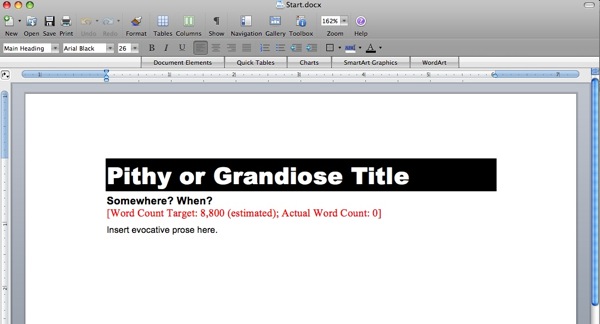 It doesn’t matter how much I write or how often I complete another tale: staring at a blank page never gets better. This is when all those vague summaries and things I glossed over in the outline become thorns to dig into my side and bleed away my creative enthusiasm. Fortunately that doesn’t last long. Things get better once I have a few paragraphs down. The main thing I try to remember is that those first difficult sentences don’t have to stay if I don’t like them later. They might exist only to build momentum so I can get on a good roll. I’ve had a number of stories where I’ve thrown out the entire first scene by the time I get through the revisions. Those first sentences still had to be written to get the story underway.