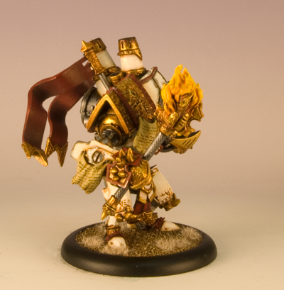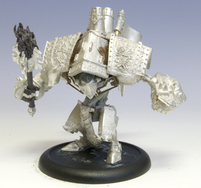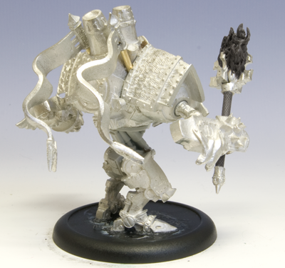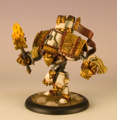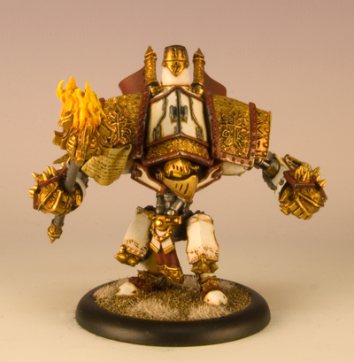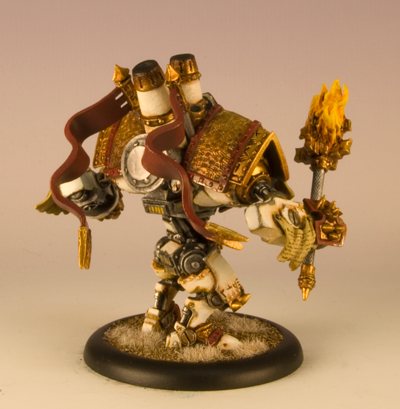 My Fire of Salvation conversion came together really well. I used plastic card and modeling putty to build the armor plates around the collar of the warjack.