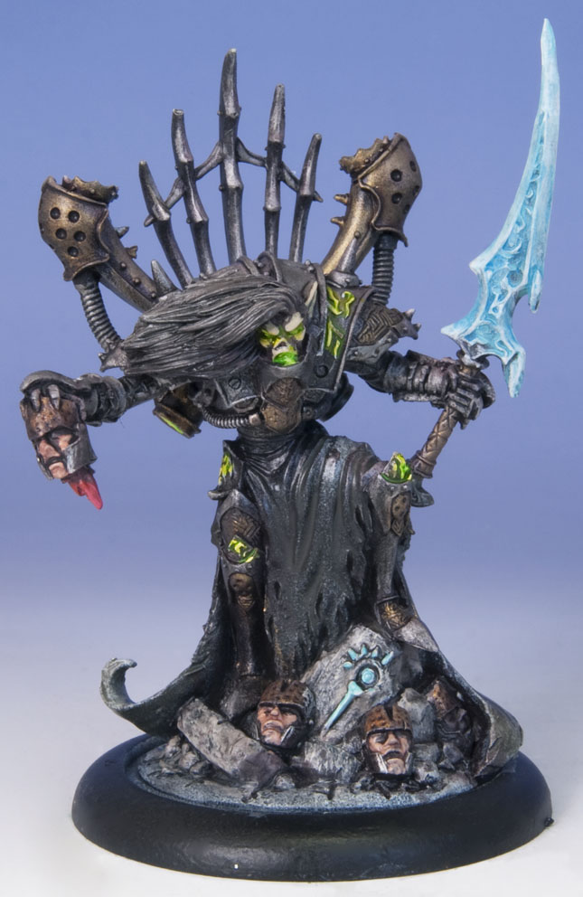 Last but not least was the host of faces. I painted all the unfortunate Precursor faces with Midlund Flesh and washed with, what else, the brown wash. Menoth White Highlight was used for the teeth. Goreshade’s face was painted using the same technique for thrall flesh found in the NQ article with an added highlight step of Thrall Flesh and Ryn Flesh at about 1:1.