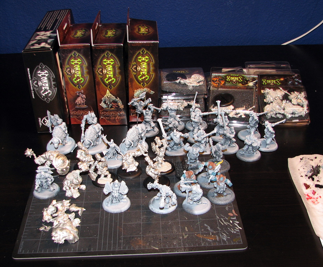 Hey, everybody. My name is Nick Scherdnik, and I work in production here at Privateer Press as one of the spin casters. I get to pour the liquid metal that creates the huge variety of soldiers and weapons in the Iron Kingdoms. I wouldn’t be honest if I didn’t say I was more than a little nervous and doubtful when I first thought about taking on the HORDES Impossible Dream Challenge. The Impossible Dream couldn’t be truer for me. Even though I’ve enjoyed focusing on the modeling and painting side of the hobby, I’ve never had a completely painted army for one reason or another. One hundred points in a month is a tall order, especially for me. However, since starting at Privateer, I’ve collected the models that appeal to me aesthetically and just sort of dreamt about one day getting around to playing with a fully painted army. I especially love the character in the Trollblood sculpts, so that’s the army I’m going to attempt. I’ll have to try new techniques to speed up my process, but I’ve decided to jump in and see what I can do. Is this finally my chance to have a fully painted force?