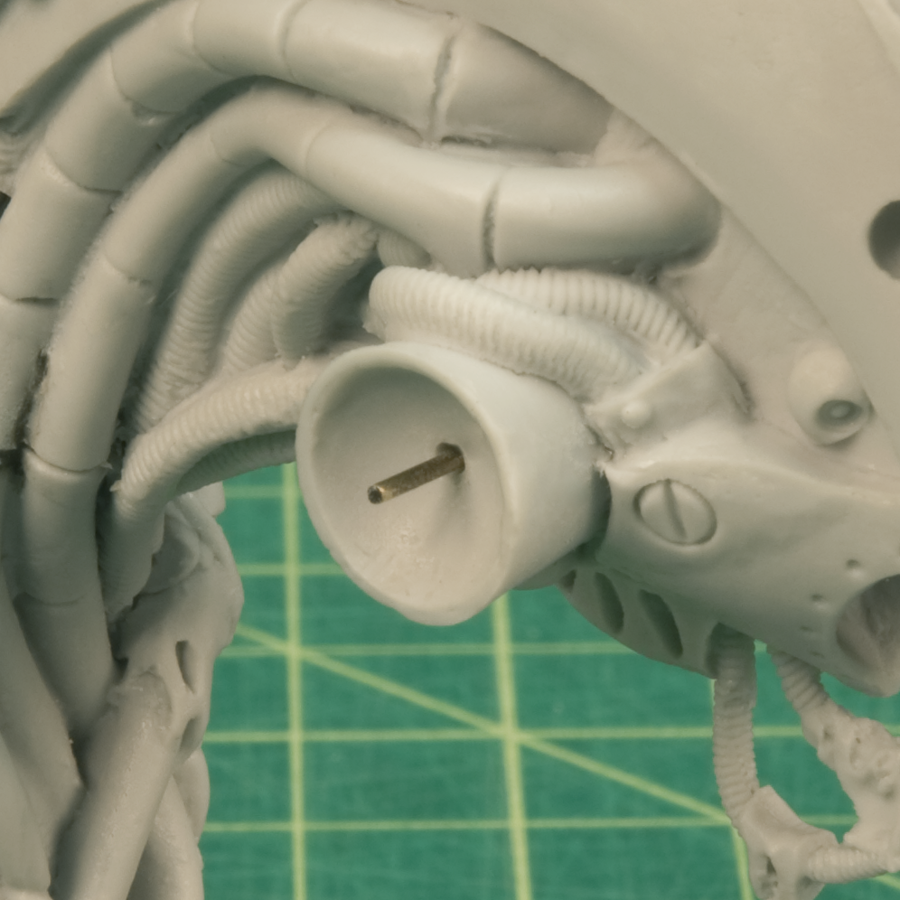 The pipes on the torso sides need to meet up with the socket on the first vent. If you need to readjust the pipe, you can heat it with a hair dryer to soften the resin. It can then be readjusted to fit as shown in the photo.