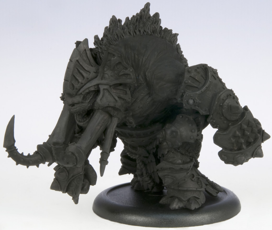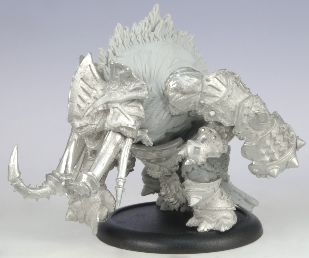 But resin isn’t restricted to battle engine-sized models alone. Also hitting store shelves this month is the first 50 mm resin/metal hybrid kit for WARMACHINE or HORDES: the Bronzeback Titan.