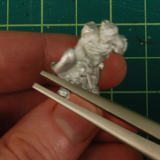Once you’ve removed the base tabs and attached the Morghoul base to the 30 mm base, you’ll want to dry fit Magnus. I found that bending his feet just a little with some needle nose pliers helps them lay flat. You want to be sure not to remove any of the detail when you do this.