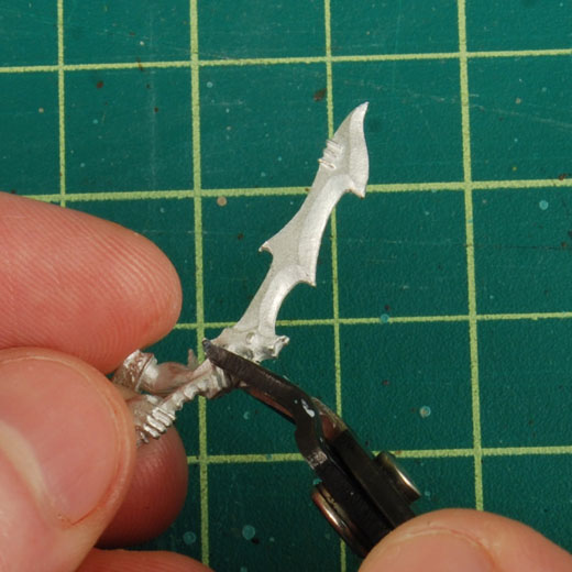 The reverse is true for the Nihilator’s sword. Be sure to remove all traces of the hilt from below the crossguard. You may want to file away any excess.