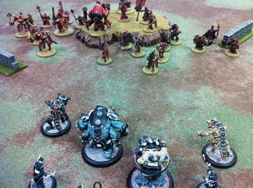 So, how do I paint my miniatures? By pretending that I am a 1940’s comic book colorist. Colors that provide a lot of contrast have served me well so far. My Protectorate of Menoth army (blue, black, gold and red) and my Skorne army (black, grey, silver and white) color schemes give me a big palate of colors to work with while still allowing my eyes to understand what it is that’s going on in front of me.
