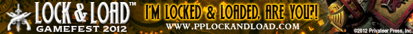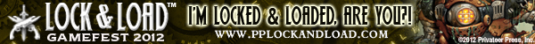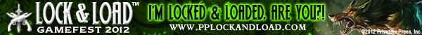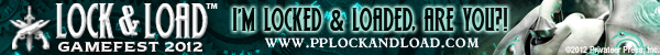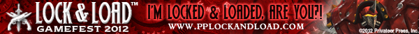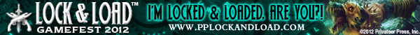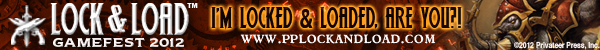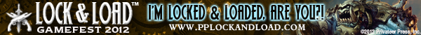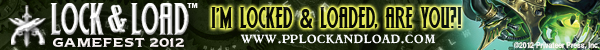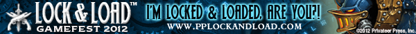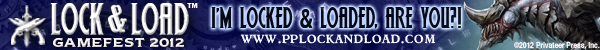 I’m really excited about Lock & Load because it’s full on, 100% pure unadulterated Privateer Press action. My Khador forces are ready to go, and I’m painting my growing Blindwater Congregation army to take as well. We hope you’re excited, too. So if you want to show your colors and tell the world you’re locked and loaded, we made these signature banners just for you! And there’s still time to get your badge, so check out www.pplockandload.com for more information.