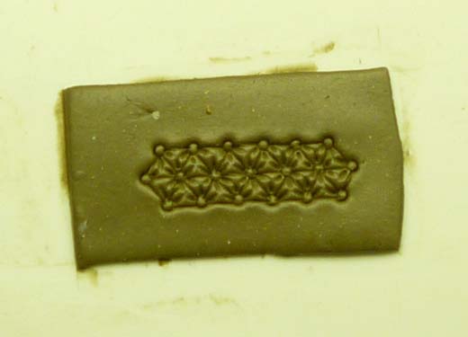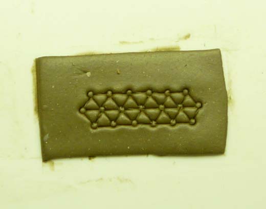 Take a thin needle or similar tool and make small “dimples” on each stud. Make these dimples in each direction. There will be a lot of them, but this helps push the putty away from the stud and toward the center of the triangle. This will give it that bulk we are looking for.
