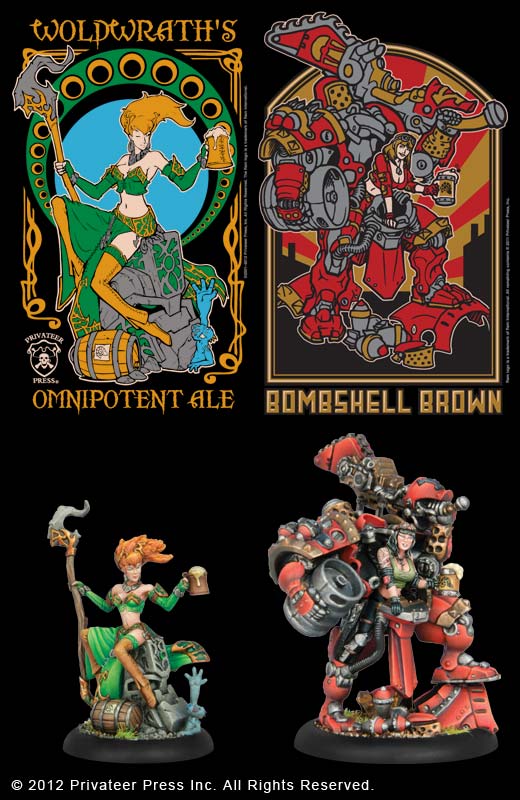 Speaking of the Bombardier Bombshell and Druid Gone Wilder, Privateer Press has teamed up with the Ram Restaurant and Brewery for a Privateer Press themed tap party Wednesday night to unveil the Woldwrath’s Omnipotent Ale! The Ram will be selling Druid Gone Wilder t-shirts, mugs, and growlers. Stop by The Ram throughout Gen Con and enjoy the special WARMACHINE and HORDES atmosphere, menu, and swag!