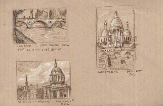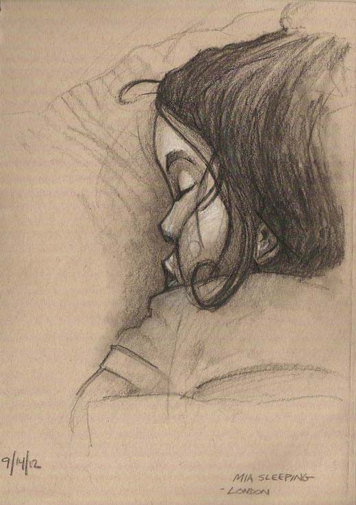 In addition to taking reference photos for those two yahoos, I also managed to do some of my own sketches of various European vistas, royal gardens, and even my daughter as she slept (it’s the only time she stays still.)