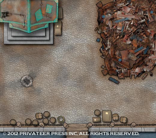 While I don’t want to spoil anything for potential players, I will say that “Friends in High Places” is our most intricate adventure to date, involving investigations and chases through and far above the streets of Five Fingers. As well, a number of challenging and unique combats take place on four of the coolest battle maps we’ve yet produced. I’ll leave you with a sneak peek of two of these awesome maps designed by our very own supremely talented Laine Garret!
