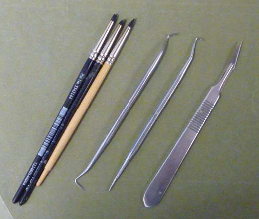 Most of the clutter I have on hand is made up by my various sculpting tools, from simple needle points to custom-made rivet makers and hole cutters. Here is a picture of the tools I use the most. It’s a pretty standard set for sculpting.