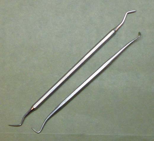 I modified the pictured sculpting tools from their original shapes to better suit my needs. One of the sculpting surfaces has broken off one of them, so I have to make a new one. In this photo the top tool is the original, and the bottom one is my modification.