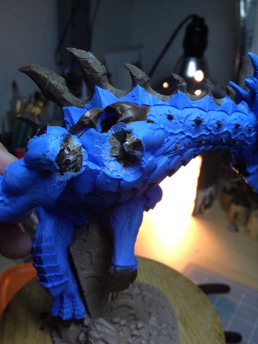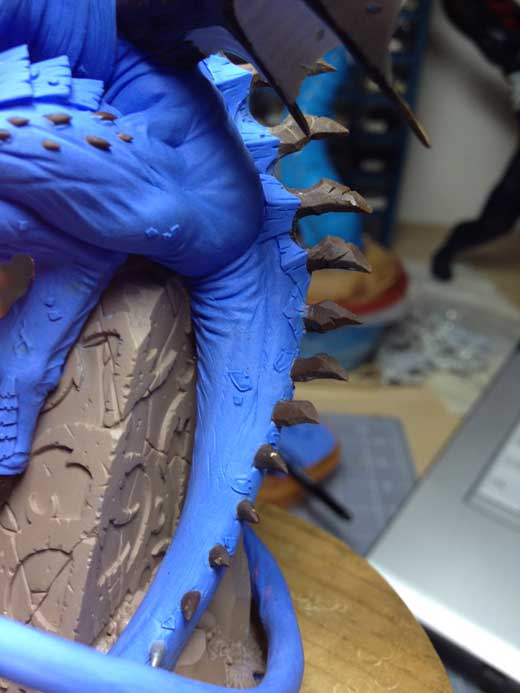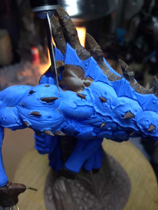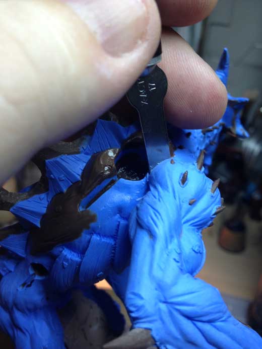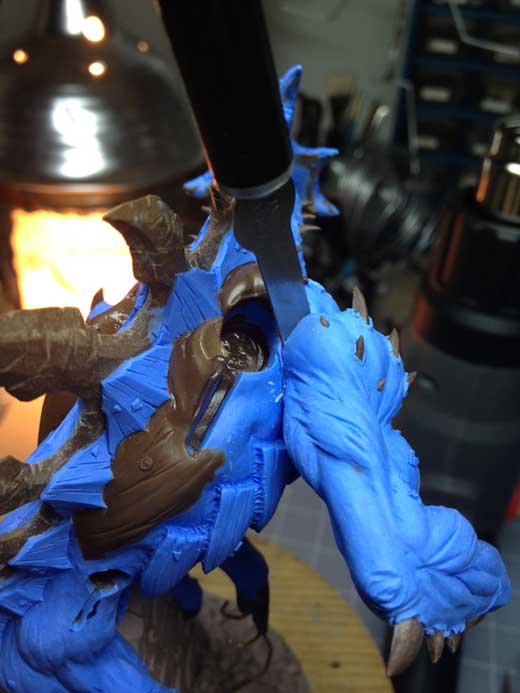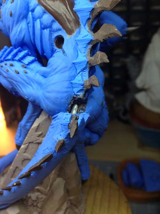 Here I’m separating the tail from the body. I carefully removed a chunk of the sculpt to reach it, but it will be glued back into place and repaired.