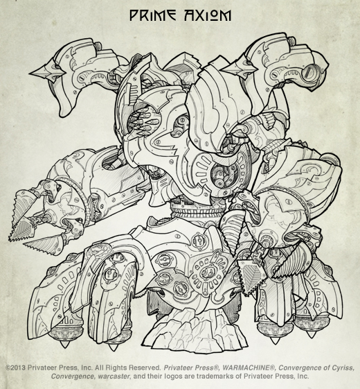 We deliberated some on how the Prime Axiom’s signature ability, Launch Servitor, would work. It could have been a special action, or it could have had a limited number of uses or limited servitor types. It might have restricted servitors from activating the turn they come into play. The finalized Launch Servitor rule, however, is both simpler and more impressive than it would have been with any of those options: Once per turn during this model’s activation, you can place one servitor solo into play within 2˝ of this model.
