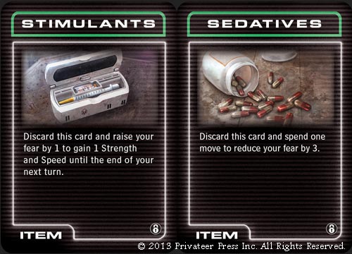 These are two of the six new kinds of item cards you’ll have a chance to find. Both offer new ways to manage your fear without using adrenaline cards.
