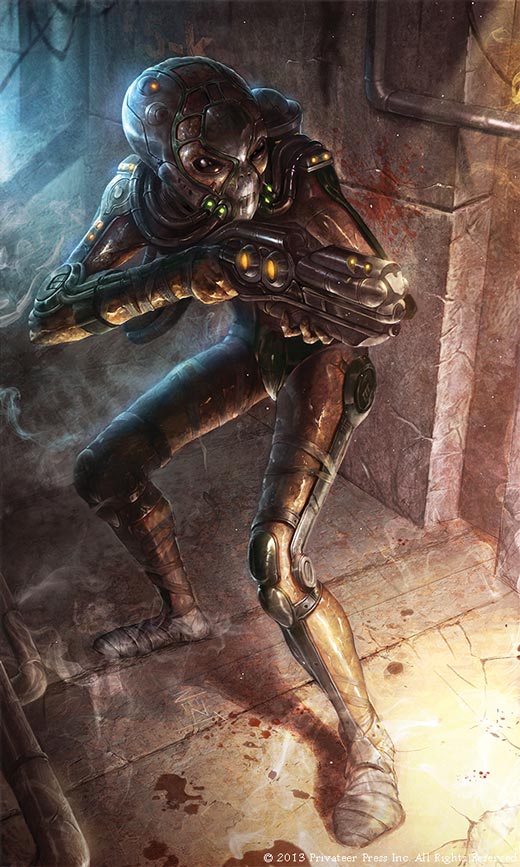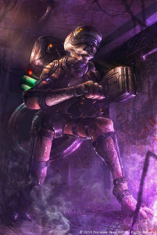 The blaster hybrids act as the heavy weapons for the aliens. Representing how they work in two different game systems was an interesting challenge. Their weapons are powerful rail guns augmented by their psychic abilities. They build up power over time and use it to unleash devastating attacks. In LEVEL 7 [ESCAPE] this means they have relatively weak attacks at first, but the longer they are in play the stronger they get. Their power is also expended when they fire, so getting one to shoot at something will weaken it for a while.