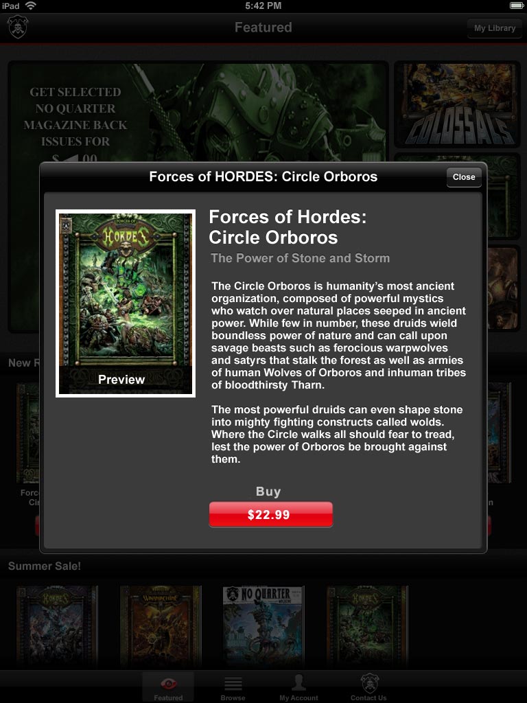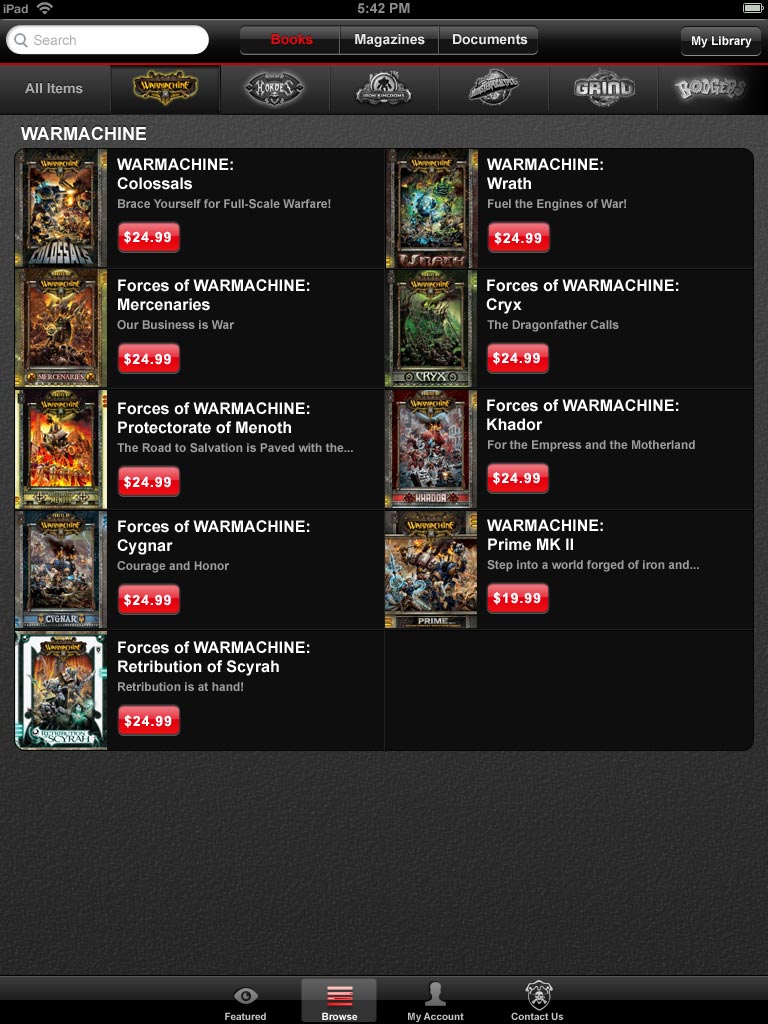 The Privateer Press Digital e-reader app offers: