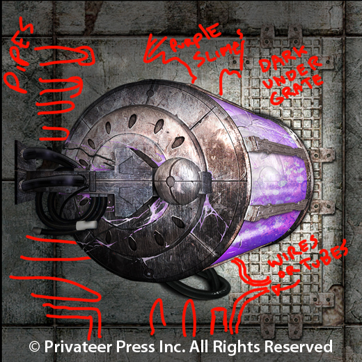 For the final hybrid tank tile, designer Laine Garrett put the finishing touches in place using various components from Néstor, along with light, shadow, texture, and components of her own creation. The result is a cohesive, team-created piece of artwork meant to draw players into the horrors of Subterra Bravo.