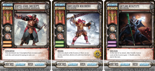 The Winter Guard Conscripts card is a vital component to this strategy. Their Conscripted ability turns their 4 CMD rush cost into a 2 CMD cost. It may sound odd, but for this reason you should avoid purchasing them in the early rounds of the game. Once they are in your army deck the mechanics behind deploying make them far less of a useful rapid-reaction force.