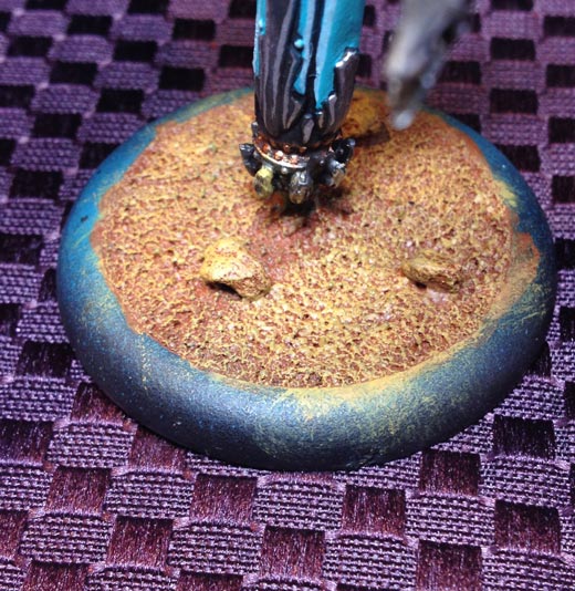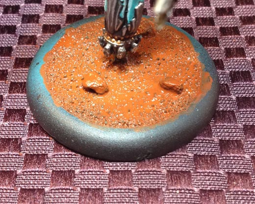 To finish the model I used Bloodstone and covered the entire base in a solid layer. Allow this layer to completely dry. I would suggest sticking the model next to a box fan to help speed up the drying process.