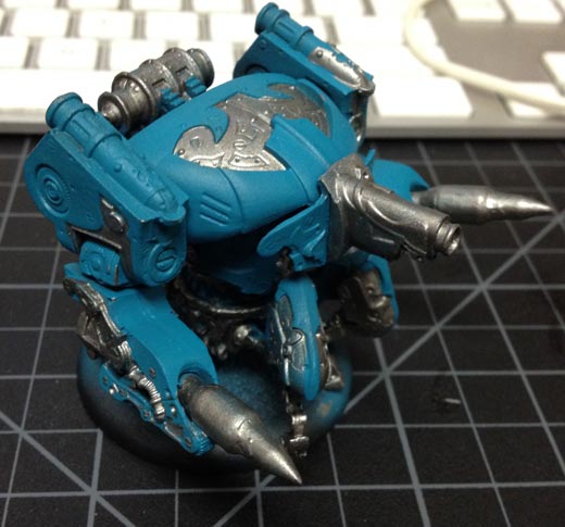 Once the basecoat is completely dry, go back and pick out all the areas you want to be white metal using Cold Steel.