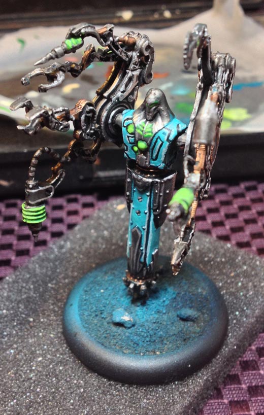 Highlight by drybrushing a small amount of Necrotite Green over the Iosan Green.