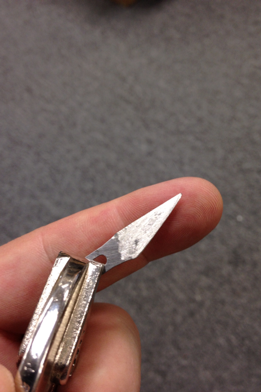 I was cleaning my sculpting knife, quickly raking it against the cloth edge of my work chair like I’ve done a hundred times a day for the last eight years when, “PING!” I heard it snap. So, now it’s time to make a new one! Here’s how I make one of the custom sculpting tools I routinely work with.