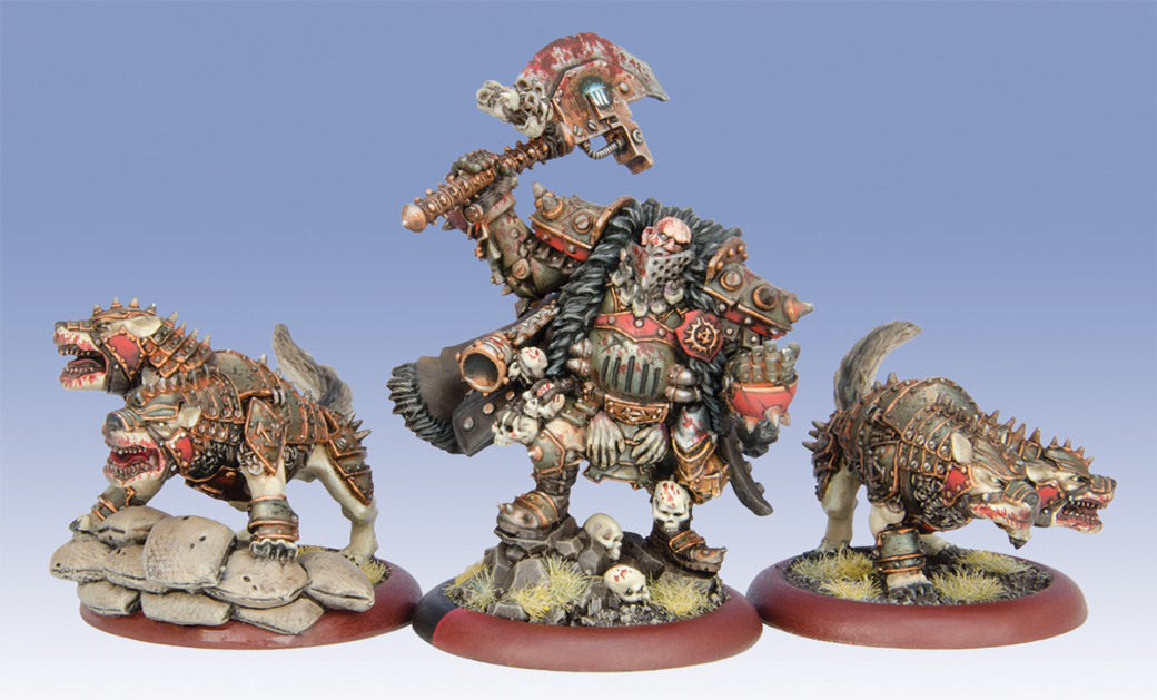 To keep in theme with the rest of my Khador, I painted my Butcher in the olive green, brass, and red of the 5th Border Legion. As a finishing touch, I gave Orsus and his argus a healthy spattering of gore and blood.