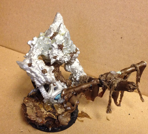At this point I had an idea for Mulg’s club. Now, I’m no marine biologist, but I’m fairly certain that your average mutant cephalopod troll isn’t going to pass by too many towering evergreens as it strolls along in the murky depths. So, how would Mulg manage to get himself a big ol’ whoopin’ stick?