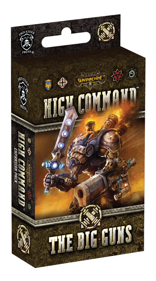 The first expansion for WARMACHINE High Command, The Big Guns, is in stores now! This set includes 84 new cards for Cygnar, Khador, the Protectorate of Menoth, and Cryx. Each faction receives one new warcaster card and five copies of four new faction cards, a full play set in one purchase!