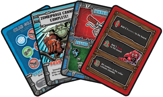 It’s bodge or get bitten when a giant mob of zombies attacks the goblins’ workshop. Now it’s up to you and the other bodgers to repel the undead or become a zombie’s late-night snack! Barricaded in your workshop, you and your goblin cohorts must rely on your mechanical expertise to construct the sometimes ramshackle but always maniacal machines you’ll need to overcome the endless Leapers, Creepers, Runners, and Brutes trying to break down your doors. Collect parts to build your machines as fast as you can, but don’t get bitten—or you’ll be left moaning and groaning as you join the horde and turn on your friends!