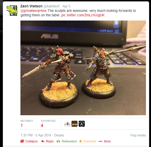 In the past few days, we’ve been seeing the first painted Kickstarter exclusives as they start to arrive in the hands of our WARMACHINE: Tactics backers! As they are shipping to everyone throughout the month of April , it’s a real pleasure to see them popping up here and there on Twitter. Once everyone has their figures, I’m sure I’ll collect a set of pictures to showcase what you ladies and gentlemen have done with yours!