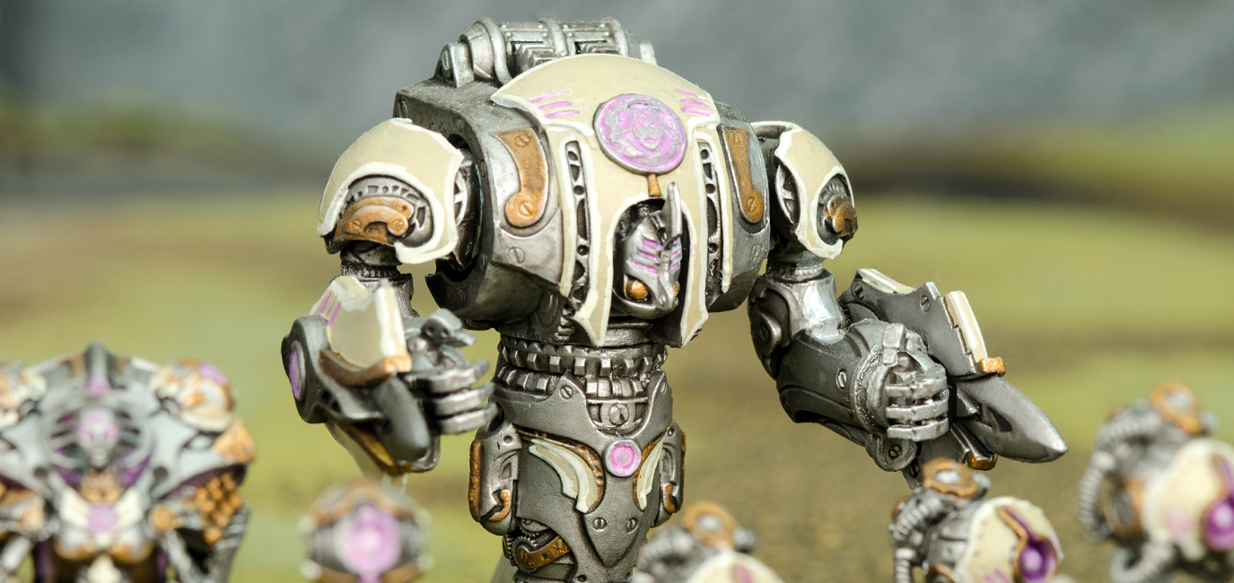 Then I decided there was no way I could play the father without also playing the mother. I picked up Iron Mother Directrix, a Prime Axiom, and a few other pieces to put together yet another 35-point list. The unit of Reductors that came with the Holiday Bundle this past winter plays a big part in the army too, and they’ve served me well.