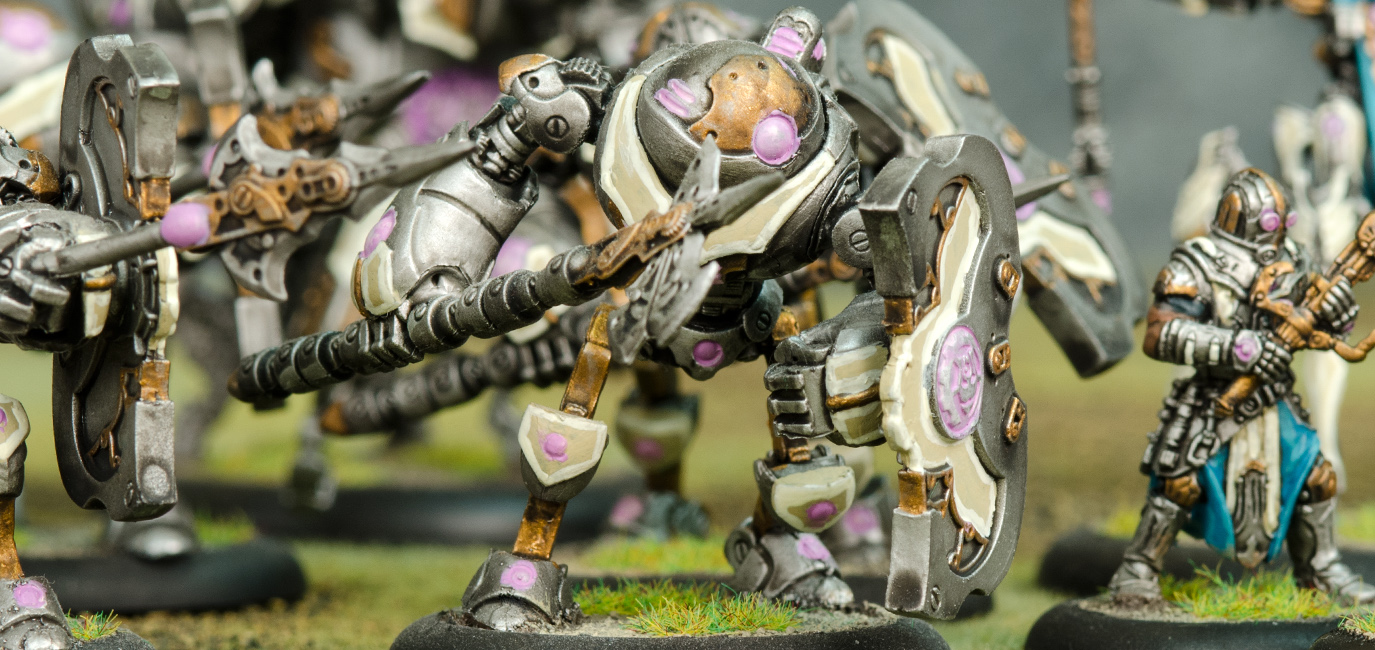 You may recall that, during our Holiday Sale, I picked up a Convergence of Cyriss Bundle and painted it up in a quick scheme I could easily replicate. Originally, my plan had been to keep this army as a small side project. Even the best intentions are sometimes doomed to failure, however, and my forces have grown exponentially larger over the past six months. Let me show you what I’ve been working on.