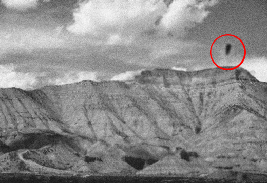 I watched for another couple of hours and nothing happened, but I could feel something in the air, a sense of urgency, a sense of impending danger. Then it happened. Something big and round came flying out of the top of the mesa. It was about the size of small bus and made this high-pitched whining noise as it rose into the air much faster than any plane I’ve ever seen, so fast it looked blurry. I snapped a few pictures of it as it took off, but I didn’t get a chance to take more because then things went crazy.