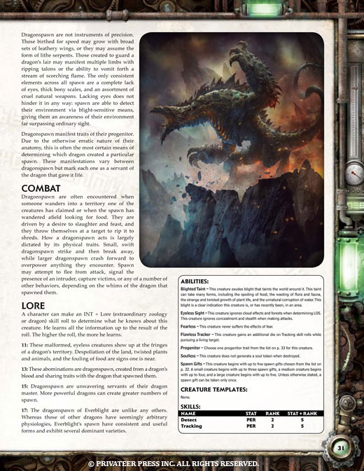 Revising the older Iron Kingdoms creature entries presented whole other challenges. The previous iterations of many creatures, due to the system they were designed for, had various strange rules tacked on—for instance, Blighterghast was super good at oceanography.