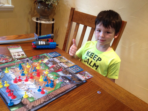 Yes, your little ones will probably make unsound decisions that will lead to everyone’s brain being eaten in many games. But that’s actually a great outcome if you take the time to explain why you are losing the game. Not by using “you” language—“You put that zombie in a stupid spot” or “It was dumb of you to take that bite, who wants to be bitten by a zombie!?” (the answer is every four year old ever, apparently)—but by using general explanations. “Well, by putting the blue zombie there, it let him break down the barricade right away” or “Since taking a bite from the zombie, I can no longer trade parts with you.” It’s important to let them connect the dots as to why their actions led to the consequences that occurred. If you do, you’ll be amazed at how quickly even a four year old will start to pick up on good versus bad choices.