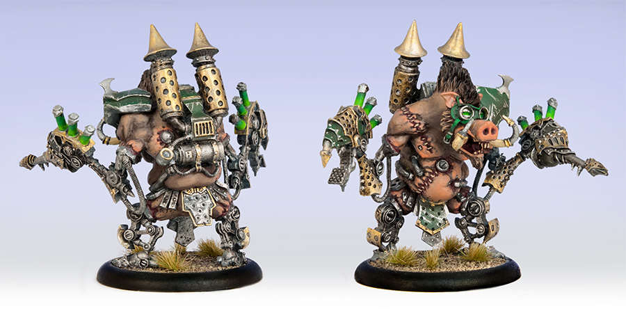 For the “Pigtectorate” Road Hog, I didn’t have the same happy coincidence as I did with the Cryxian one, so I had to get a little creative with a heavy warjack kit.