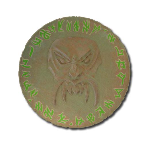 During the adventure, the characters activated the amulet, revealing Orgoth script that the players had to decipher character by character. A failed Cryptography roll or an incorrect guess had painful consequences for the characters.