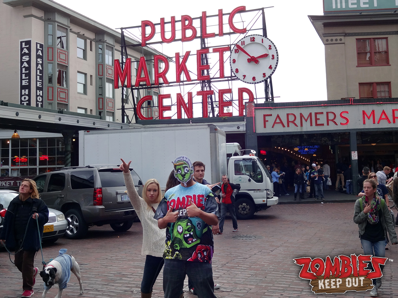 Seattle has not been the same since last April when Privateer HQ came under attack by the shambling hordes of Zombies Keep Out. Although the Privateer Press offices were successfully defended, it seems that some of the stinkers escaped and have been savagely photo-zombing innocent people across the city. Have you seen a zombie in your area? Perhaps you thought it was just someone wearing a downloadable mask?