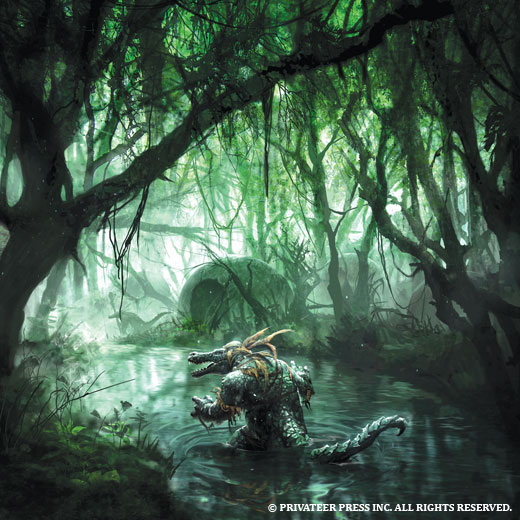 The next fiction vignette explores a question many of you might have: where exactly did that gator get his giant gun? Longchops has been infatuated with the accouterments of mankind for years by the time the Hogwash scenario in the Unleashed Adventure Kit begins, but once he was a simple gatorman living in the Widower’s Wood, preying on unfortunate travelers who wandered too far off the path.