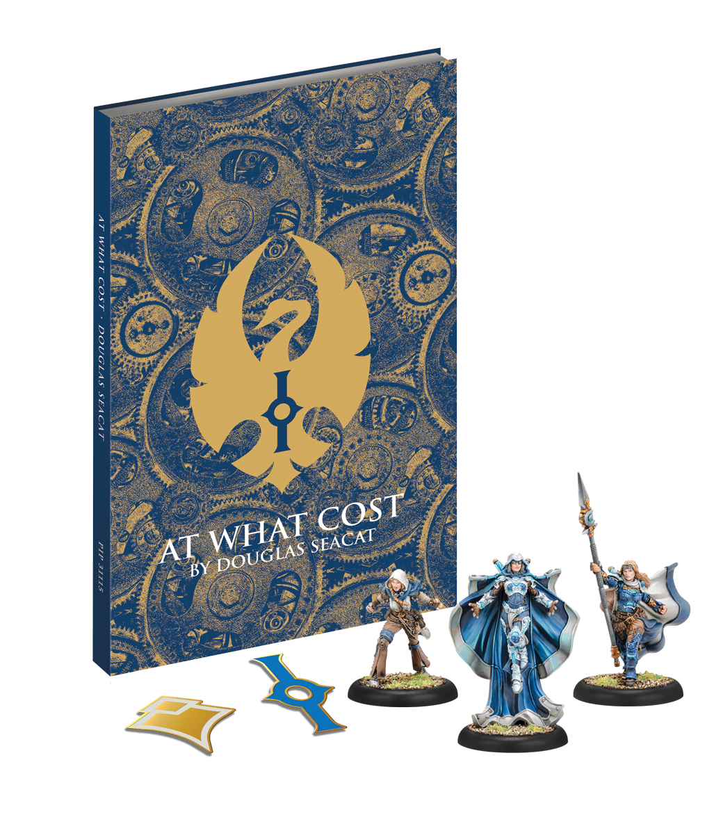 Limited-edition Privateer Pins, and a hardcover copy of At What Cost, an original novella by Douglas Seacat!