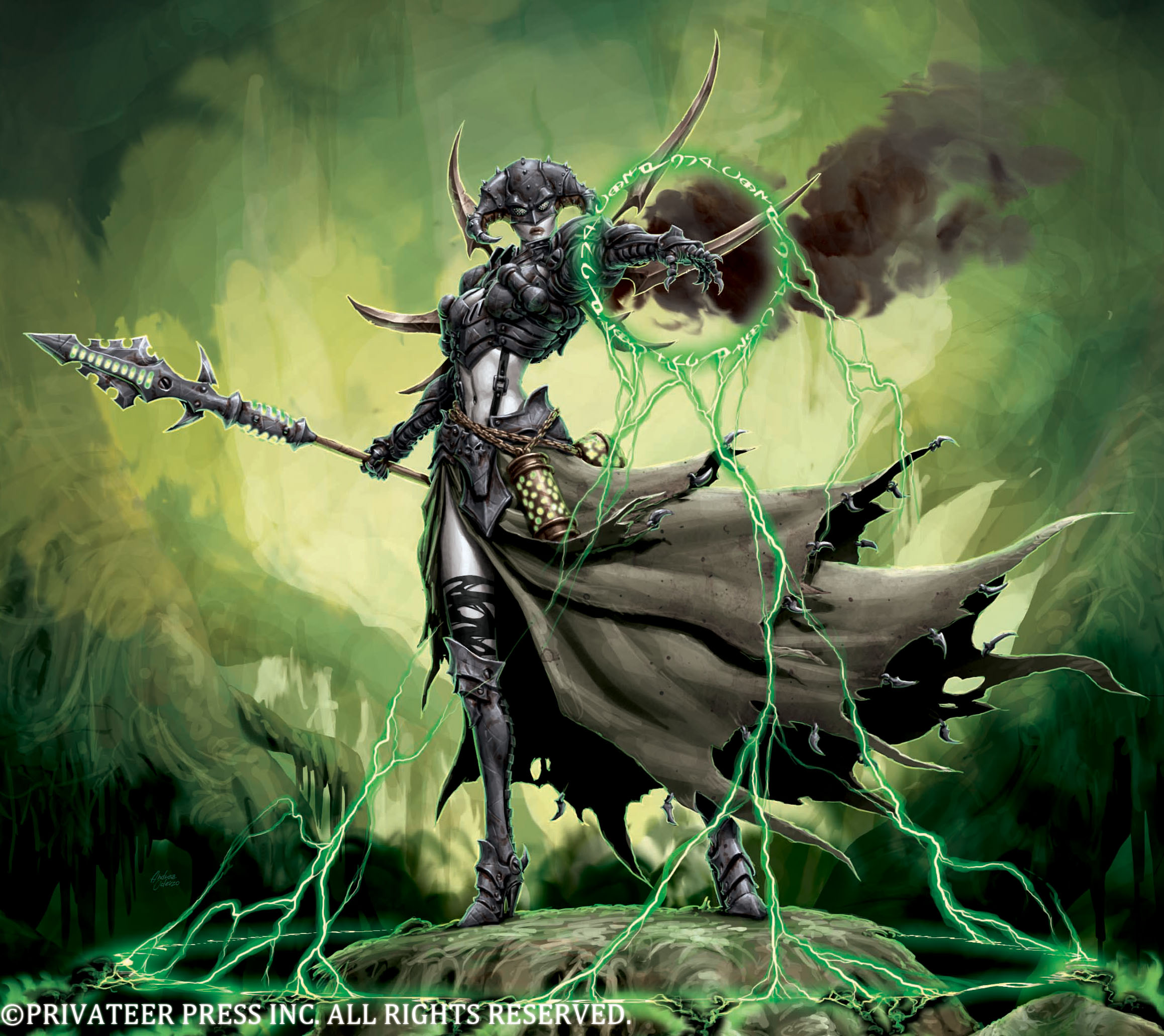 We decided Deneghra should manipulate her sister into neutralizing one of Asphyxious’ lich lord rivals, something that would initially seem like a Cygnaran victory. This would serve to show Haley’s deepening power while shedding a new light on Deneghra. The way this story would unfold worked well with our Mk II force book release plan, as our readers would get Cygnar’s side of the story first and would only understand why this happened when the Cryx force book was released near the end of the WARMACHINE force books series.