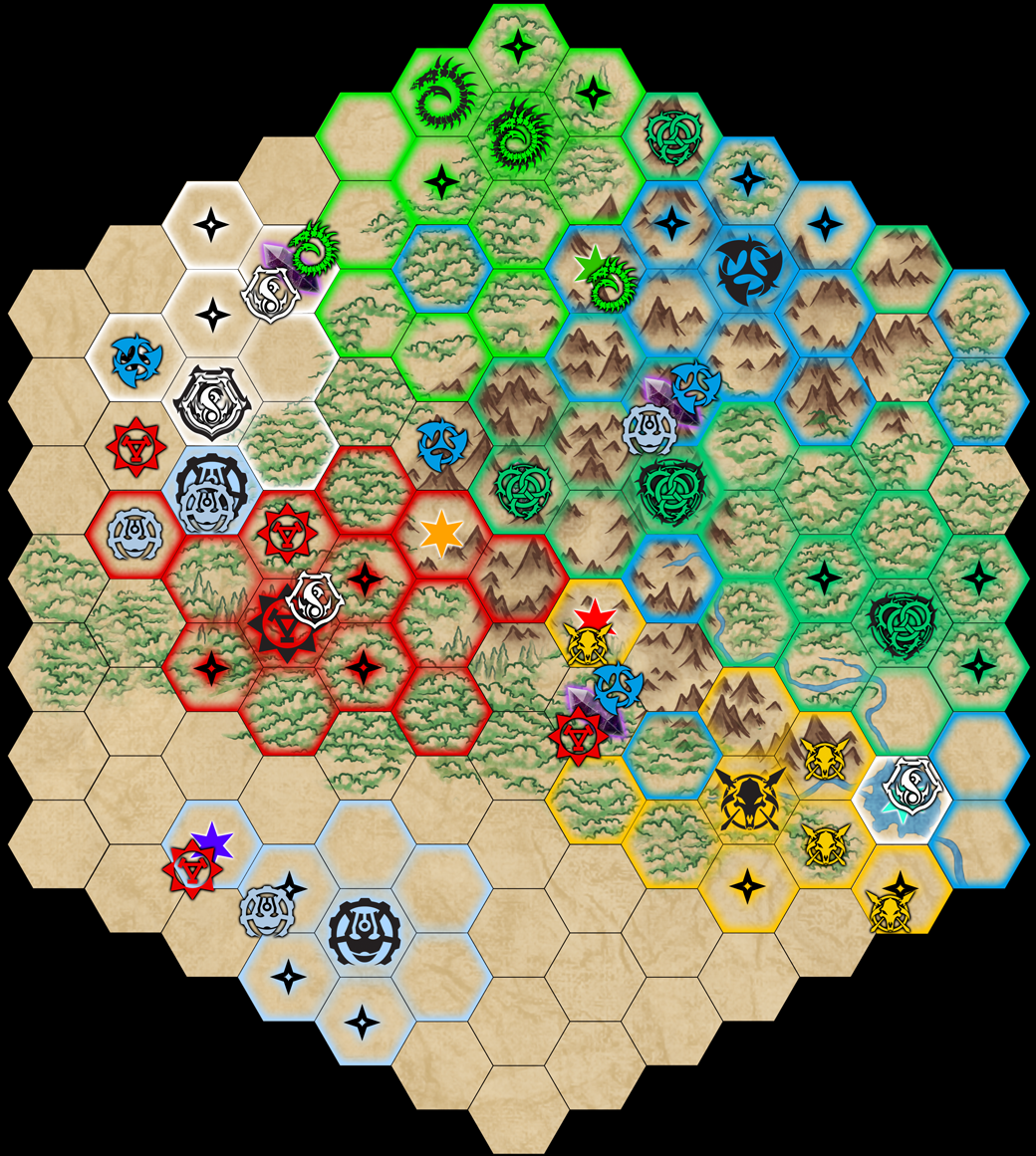 After being targeted hard by the alliance of Simon and Agel, our typically gung-ho Retribution commander Michael Plummer was suffering a bit of the no-funs by Round 5. Talking to him about why this was, I determined it wasn’t so much that he felt picked on by the Convergence and Khador alliance but that he felt he had missed out on the secret alliances and back-alley deals our other players had been enjoying. This had come about because the encroachment of the Khador and Convergence alliance had compounded his fairly isolated position on the map. So, Plummer had found himself largely divorced from the larger meta-game, one of the cornerstones of the campaign experience.