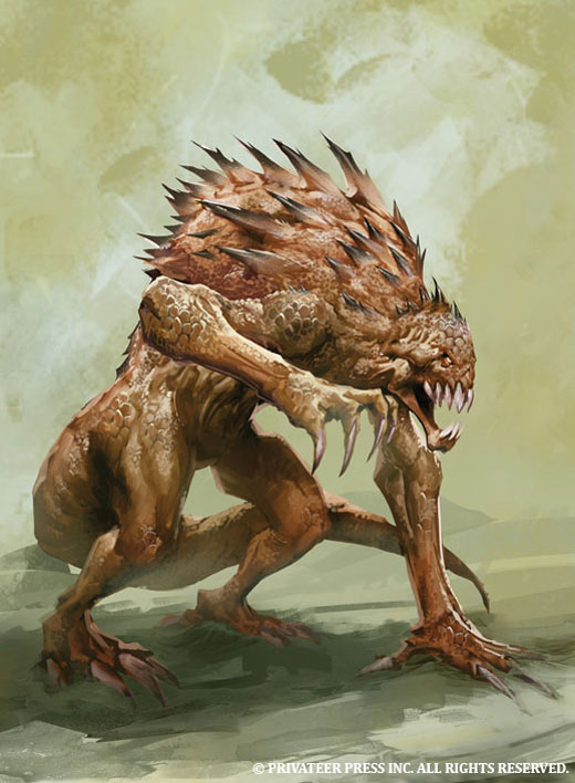 The players found lots of excellent opportunities for roleplaying within the rigid strictures of the skorne caste system. Tyrant Lexaar would take reports only from Sakad, but if Sakad wasn’t around, he had to ask Warki for a report. Will played this up, not addressing Ed at all and merely waiting to be called on, until finally Ed snapped and told him, “Just report to me what you know when you think I need to know it.” Though a slave, Warki suddenly had value. Simon played up Ashuur’s desire to know more, asking if he “could have Warki’s body when [he is] done with it.” Each player fleshed out their characters—including how they viewed one another—and how they chose to interpret them made all the difference.