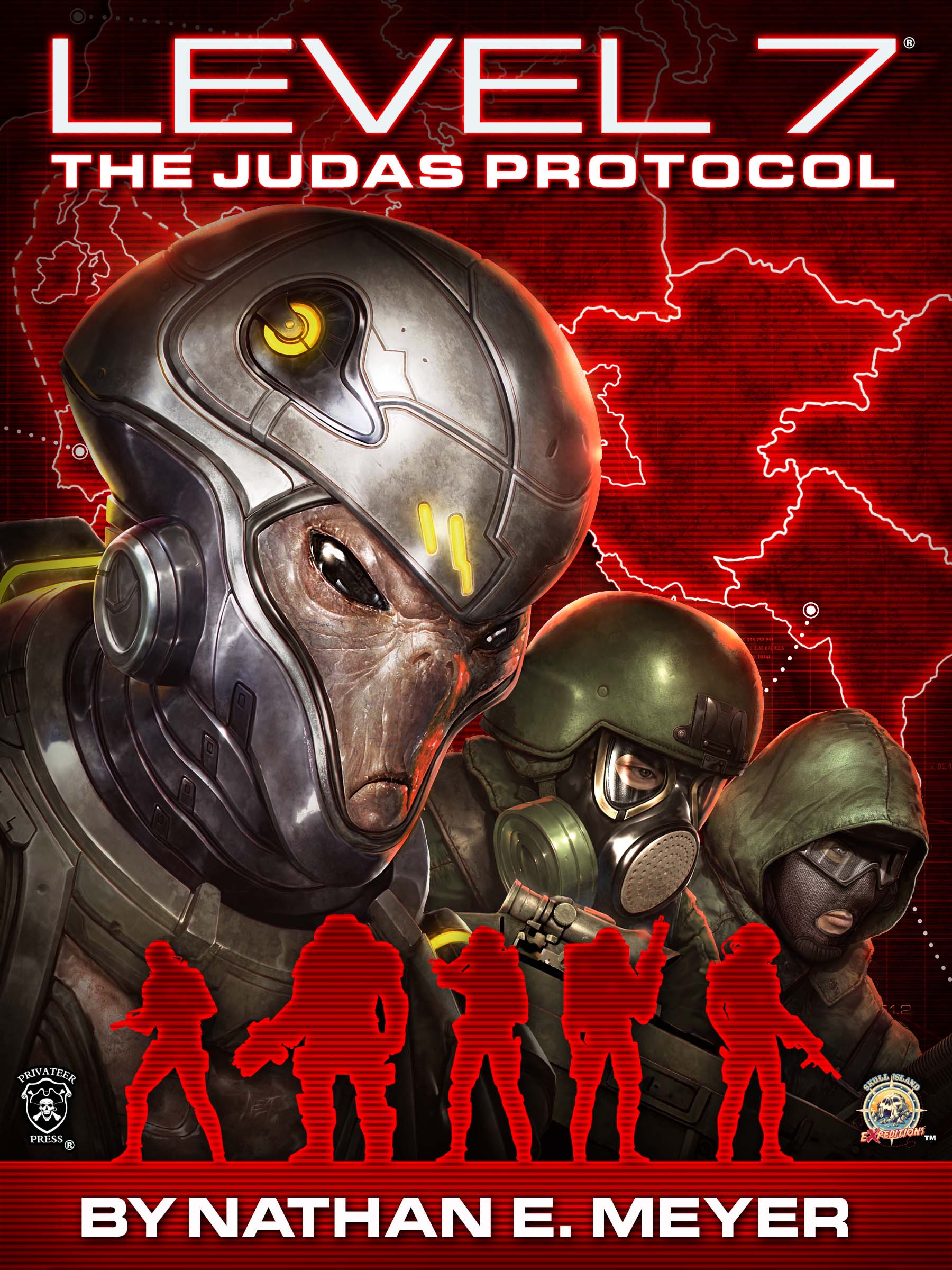 From now until February 5th, 2016, players and readers can explore the world of LEVEL 7 through a special mission supplement to the LEVEL 7 [Omega Protocol] board game—and it’s free when players preorder LEVEL 7: The Judas Protocol, the new e-book by author Nathan E. Meyer, for $7.99 through Skull Island eXpeditions or DriveThruRPG. Both the game supplement and the novel take players and readers into a world where the only way to deal with deadly aliens is with deadly military force. It begins deep below the Arctic ice, in a sinister government laboratory known only as Subterra Foxtrot, where those aliens called the Ghin conduct hideous experiment on human victims. Locked in a one-sided bargain with the American government, trading technology for living subjects, one of the Ghin hides a devious secret from his handlers: betrayal and defection. Now, from the blackest depths of Special Operations comes a unit of ruthless killers, each man trained and outfitted to combat the alien menace….