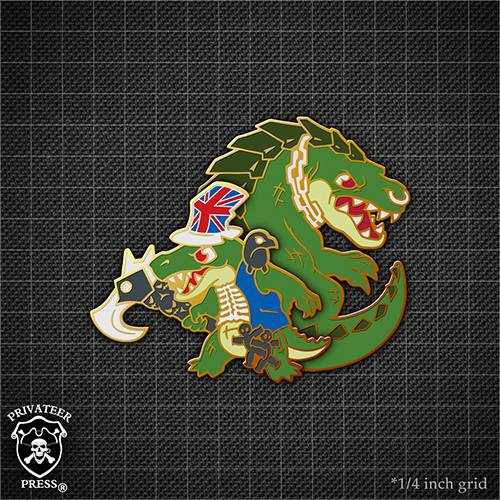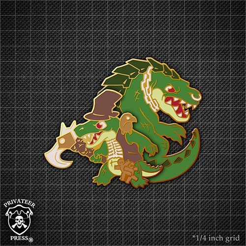 We wrap up a line this month with a Trollbloods favorite, the Hoarluk Doomshaper Quitari Pattern. Combined with Madrak’s and Grissel’s, this rounds out our big three. Time will tell if we return to this pin line in the future!