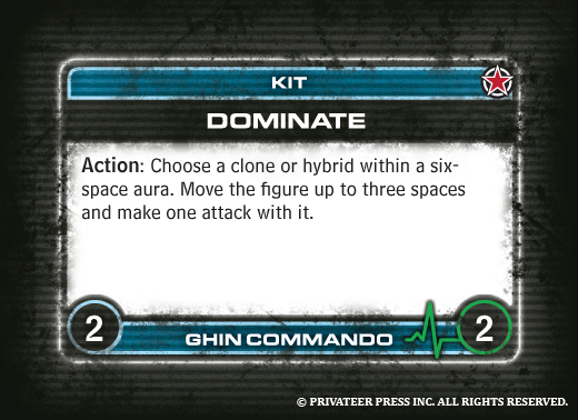 Focusing on the Ghin psychic connection to one other and to their servitor creatures gave me a lot of room to explore for this kit deck. One of the first abilities I wrote was the ability to briefly take control of a clone or hybrid. These creatures are controlled through mental commands, and the Ghin Commando can temporarily subvert the overseer’s control to move and attack with the creature.