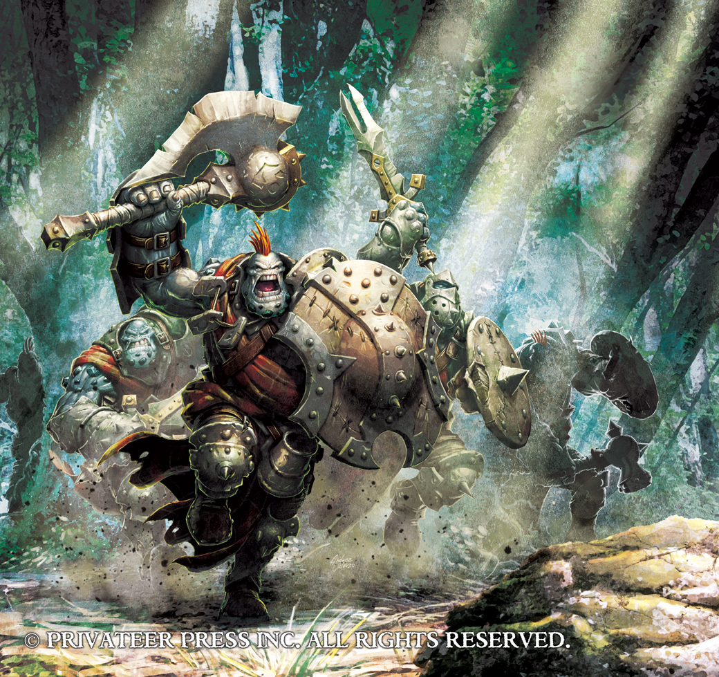 One of the factions that required the greatest amount of new art was the Trollbloods. They’ve visually evolved over the last decade, and so a majority of the older art simply no longer fit within our current aesthetic. Whenever I have the opportunity to assign Trollblood artwork to Andrea Uderzo, it makes Chief Creative Officer Matt Wilson and Creative Director Ed Bourelle extremely happy, so I try to use him on Trolls as much as possible. In this illustration, I wanted to see the Kriel Warriors bursting forth from the tree line in a charge attack, and, as usual, Andrea nailed it.